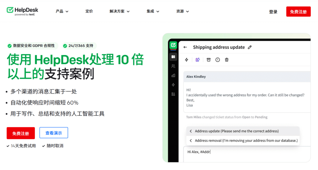 HelpDesk 官网注册地址:https://www.helpdesk.com/?a=YuUfRr4WR&utm_campaign=pp_helpdesk-default&utm_source=PP