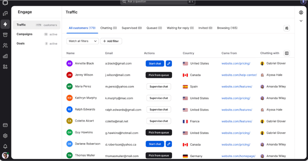 LiveChat提供了广泛的功能,可能是我们审查过的实时聊天解决方案中最多的工具。您可以通过工具和功能获得价值,这些工具和功能不仅包括聊天,还包括票务,客户互动,第三方集成,文件共享,工作安排,高级报告,多品牌,数据安全,地理标记,共同浏览,聊天调查等。